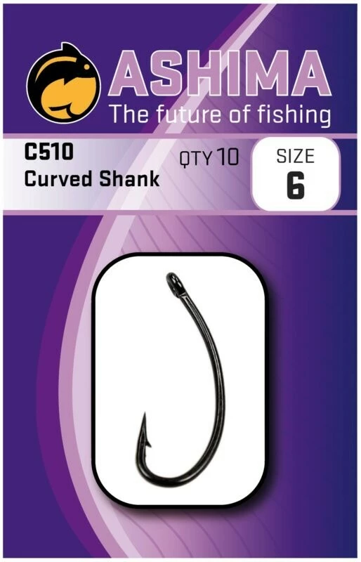 De curved shank 510 haak is uitermate geschikt voor de visserij met pop-ups. Door zijn lang gebogen steel is dit een haak voor het vissen op opstakel vrij water waar vrij kan worden gedrild. De 510 curved shank haken zijn voorzien van een mat-zwarte coating ontwikkeld door Ashima. Deze haak is te verkrijgen in de volgende maten 6, 8 en 10. Verpakt per 10 stuks.