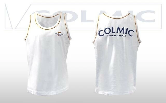 Witte t-shirt zonder mouwen. Logo voor en achteraan.