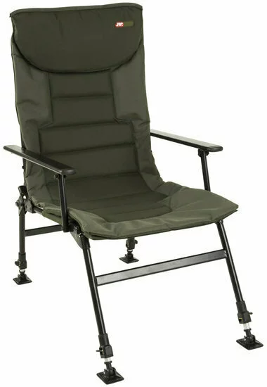 De Defender Chairs van JRC bieden optimaal zitcomfort. De vier verstelbare poten zijn helemaal horizontaal te vouwen. Dit voorkomt wegzakken in een zachte ondergrond. Het kussen is lekker zacht en dit zorgt ervoor dat je er lekker bij zit aan de waterkant! De Hi-Recliner Chair is breder en biedt dus lekker veel ruimte.